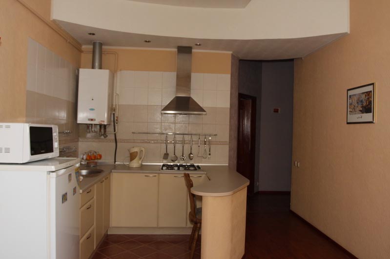 This apartment of the total area 60 squire meters has a living room - studio with the nice and comfortable arm chairs and a large couch that easy makes a Queen sixe bed. There is a bedroom with the Queen size bed and other furniture that makes stay comfortable. This apartment has the own stairs from the court yard leading directly to the entrance door of the apartment.